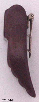 Heavily carved black bakelite clip marked 'Made U.S.A.'.