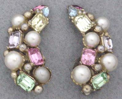 yellow, pink, green and light lavender with creamy pearls set in