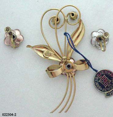 Signed Harry Iskin MIB (mint in box) brooch and earring set.