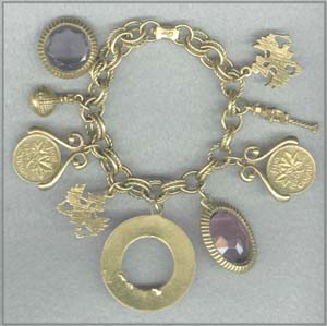 A Coro 10 commandment charm bracelet. It is signed with the