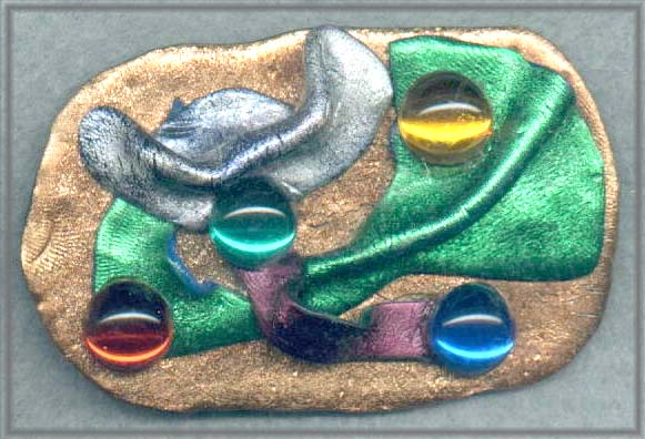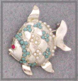 rhinestone for his eye and turquoise and pearl accents on his body.