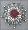 Gorgeous cabochon and rhinestone set brooch sits about 1" high and