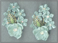Plastic flowers, enameled leaf and aurora borealis rhinestones